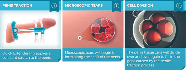 - With daily use, stretching the penis triggers a process known as “mitosis” that stimulates the body to duplicate cells. This is the same system of recovery and growth as in bodybuilding.